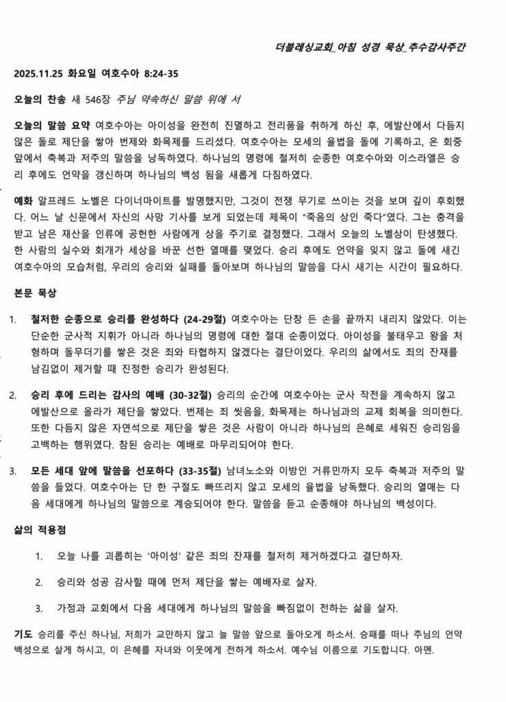 2025 추수감사주간 아침 말씀 묵상FacebookTwitterPinterestWhatsApp 2025 추수감사주간 아침말씀묵상지다운로드